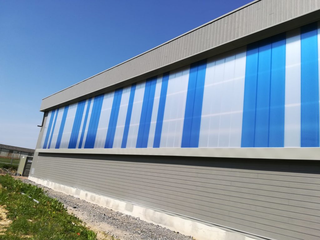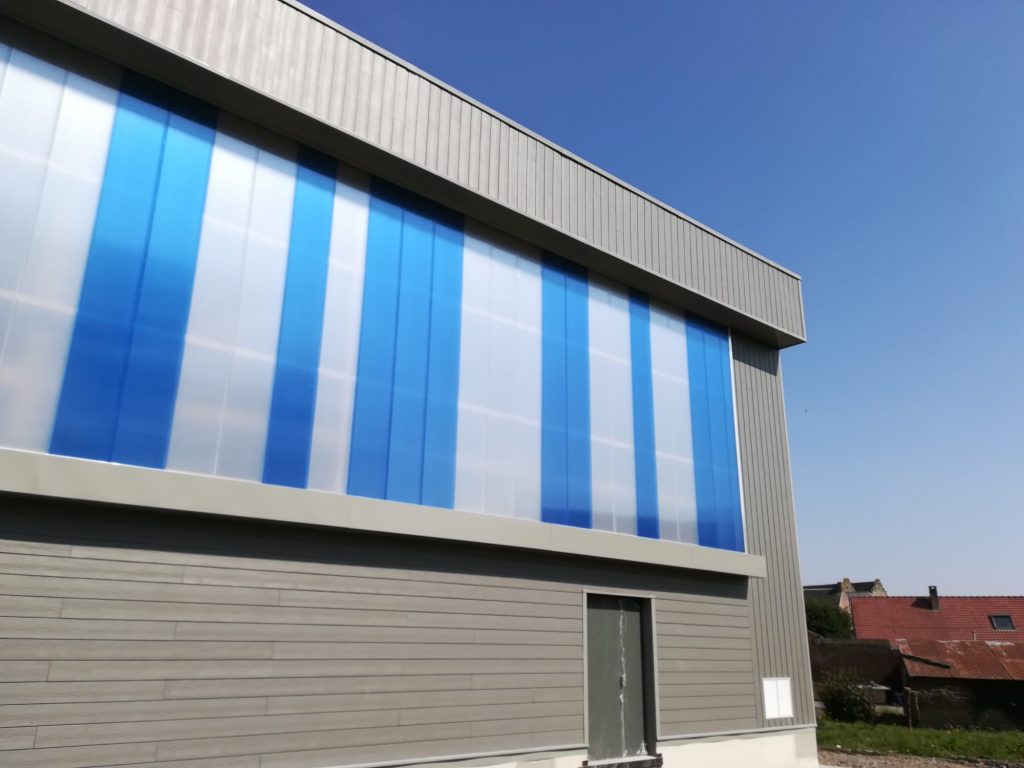 Matériaux : Bardage Fibre Ciment de chez ETERNIT – Bardage Polycarbonnate de chez AKYVER