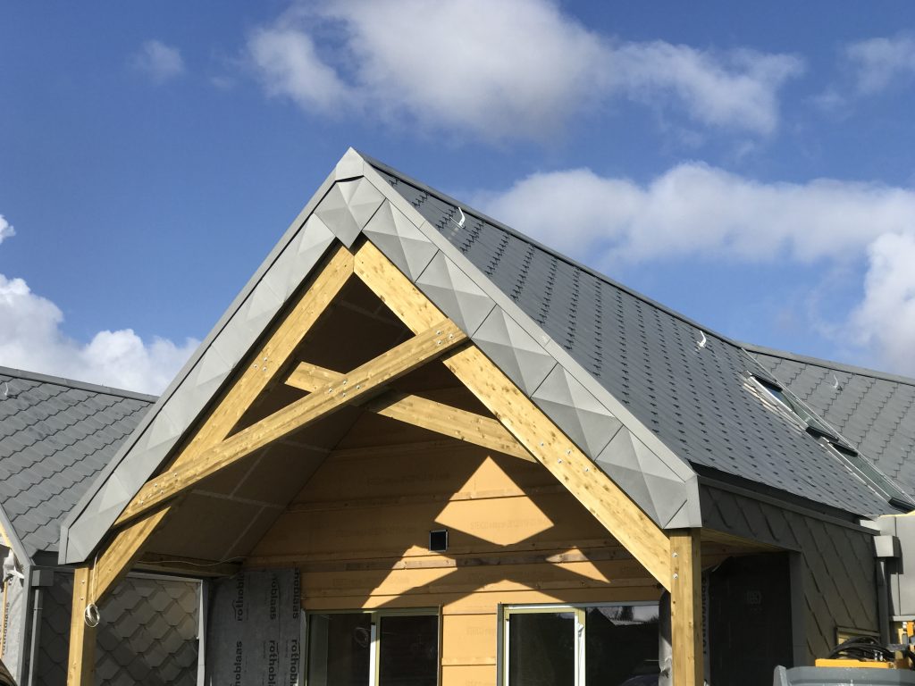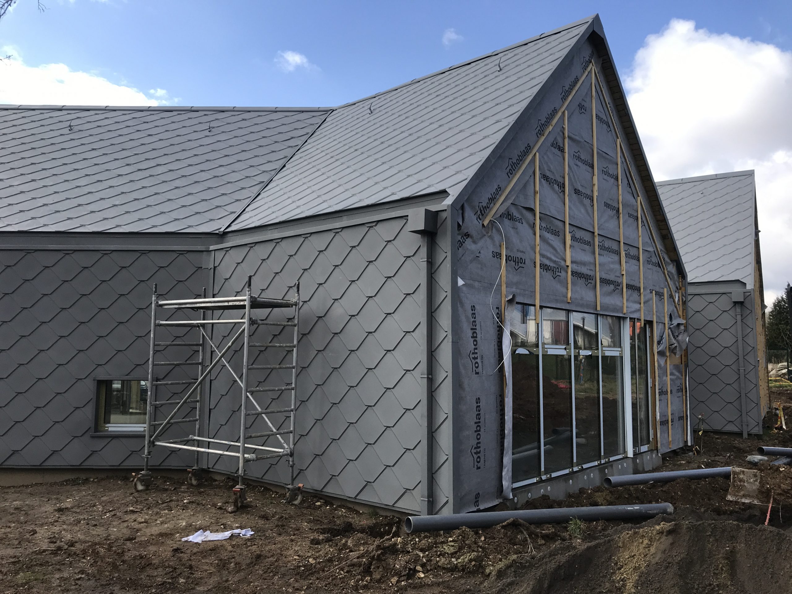Couverture et Bardage réalisé à 100 % en zinc losangé finition quartz.