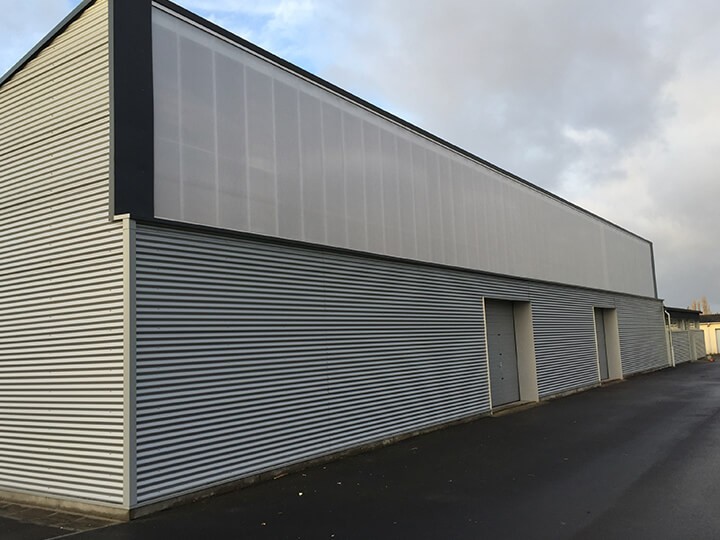Matériau : Bardage Fundermax composite, en acier simple peau
